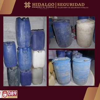 En el sitio fueron localizados 1,140 litros de hidrocarburo contenidos en 21 recipientes de diversas capacidades, así como 79 contenedores vacíos, retirando infraestructura asociada a esta actividad y evitando su posible reutilización.